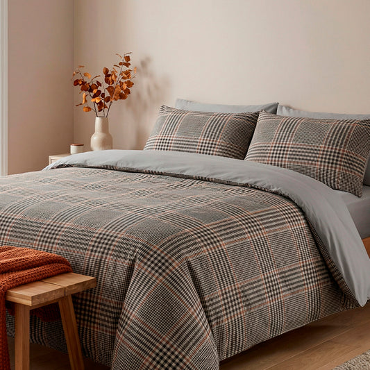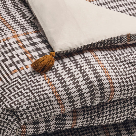 Duvet cover + pillowcase cotton satin - Pied de poule Taupe