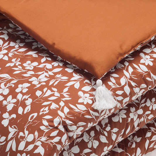 Duvet cover + pillowcase cotton satin - Fleurs minimalistes Terracotta
