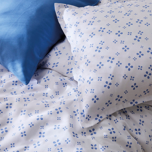 Duvet cover + pillowcase(s) cotton satin - Mirabelle White/blue
