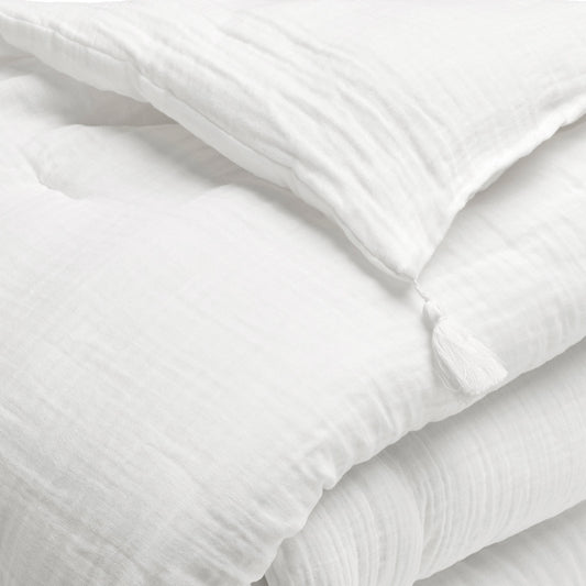 Quilt with tassels cotton gauze - Uni White 02 - 140 x 200 cm