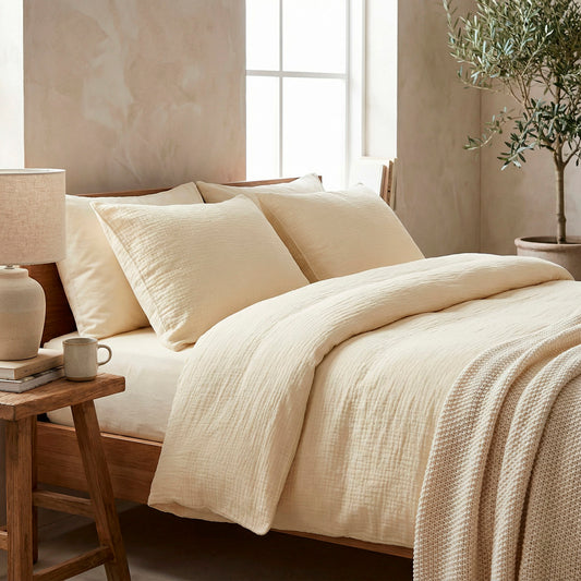 Duvet cover + pillowcase cotton gauze - Uni Yellow 04