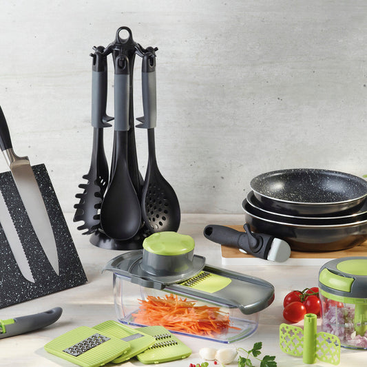 Vegetable slicer set with container - grey/black - 13.5 x 16 x 28.5 cm