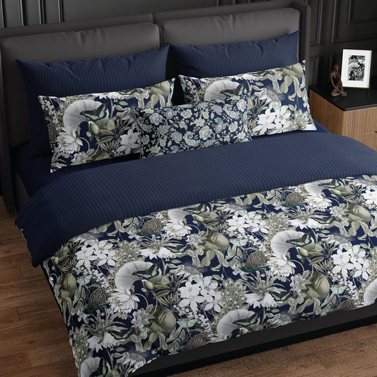 Soon AvailablePillowcase cotton satin - Jardin orné Dark blue
