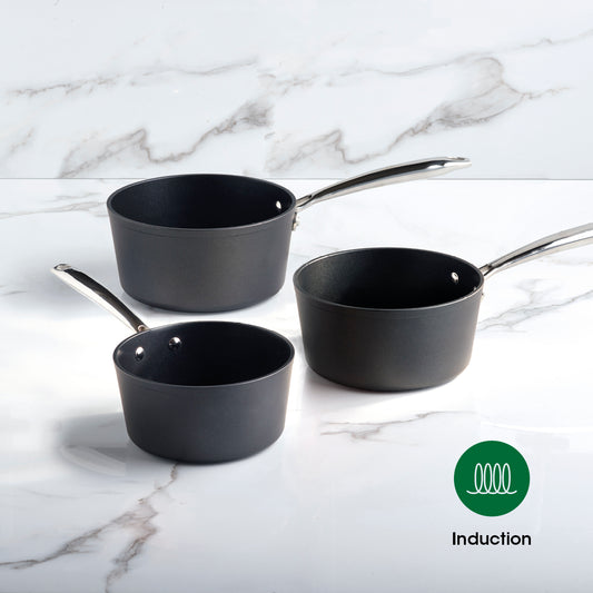 Soon AvailableSet of 3 sauce pans 16 + 18 + 20 cm - Black