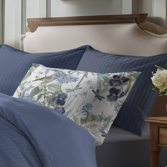Soon AvailablePillowcase(s) cotton satin - Caroline White / Blue