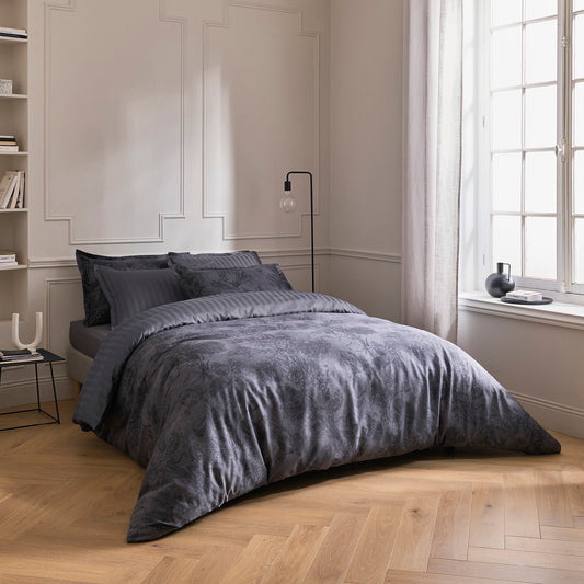 Pillowcase(s) cotton satin - Colibri Botanique Black grey