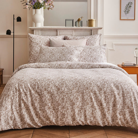 Pillowcase(s) cotton satin - Parterre de Roses white/taupe