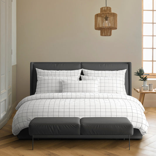 Pillowcase(s) cotton satin - Grands carreaux white
