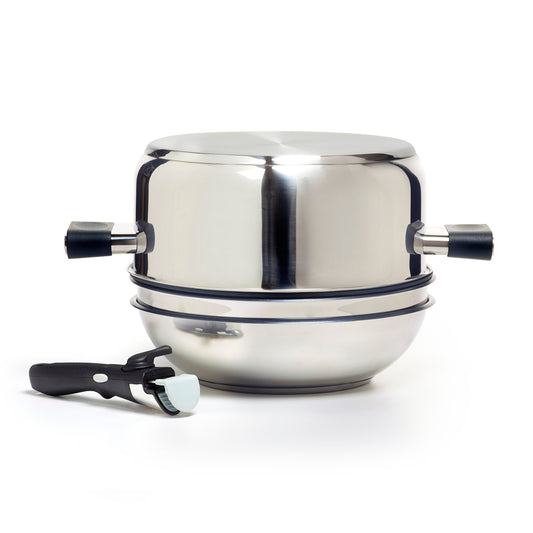 Non-stick stackable cookware set with removable handle 6 pieces - Silver