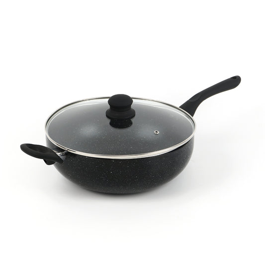 Wok in aluminum with lid - Granite Pro ceramic - Black