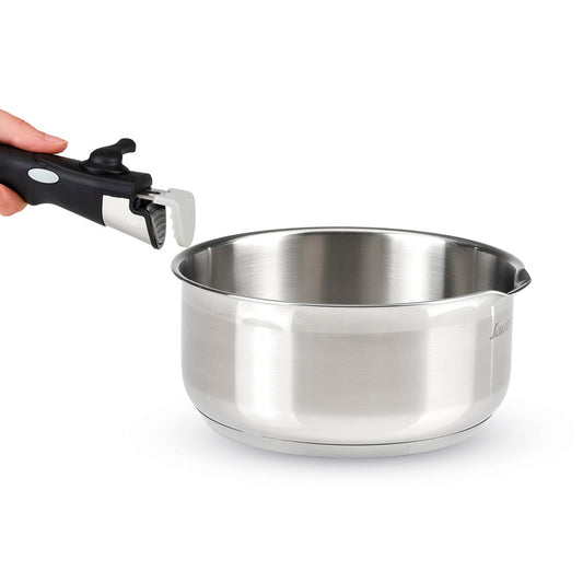 Set of 3 stainless steel sauce pans with removable handle - Silver
