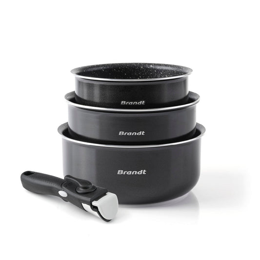 Set of 3 sauce pans with removable handle