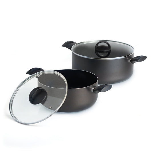 Set of 2 pots with lid Carbone Pro - ultra resistant and non-stick - aluminum - Black