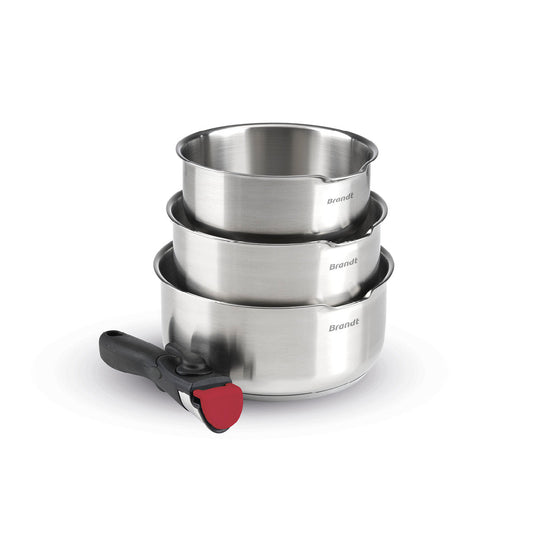 Set of 3 stainless steel sauce pans with removable handle - Silver
