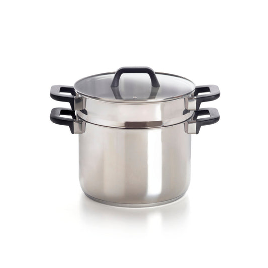 Pasta pot with insert - Triple Bottom - Stainless steel - with lid - Silver