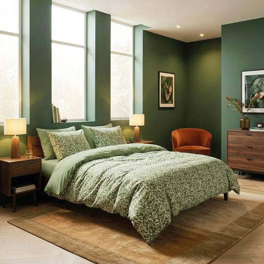 Soon AvailableDuvet cover + pillowcase cotton satin - Floréal Green