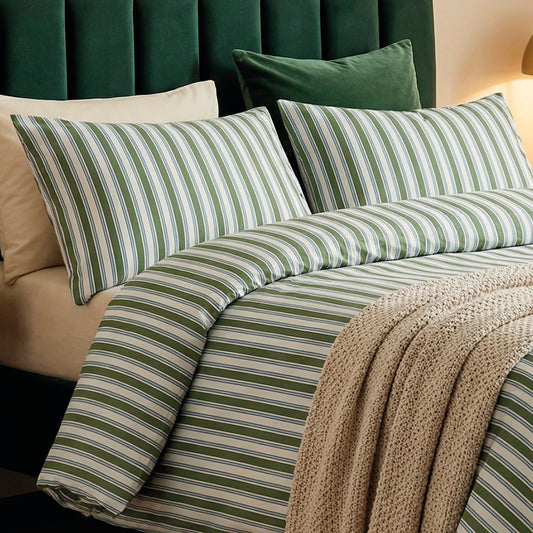 Soon AvailableDuvet cover + pillowcase cotton satin - Lorine Green / Blue
