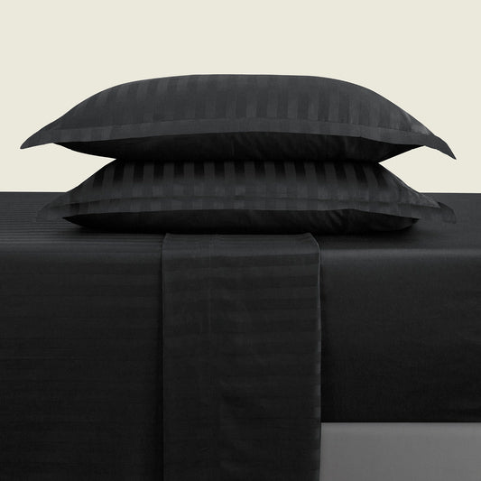Sheet set cotton satin - dobby stripe woven black