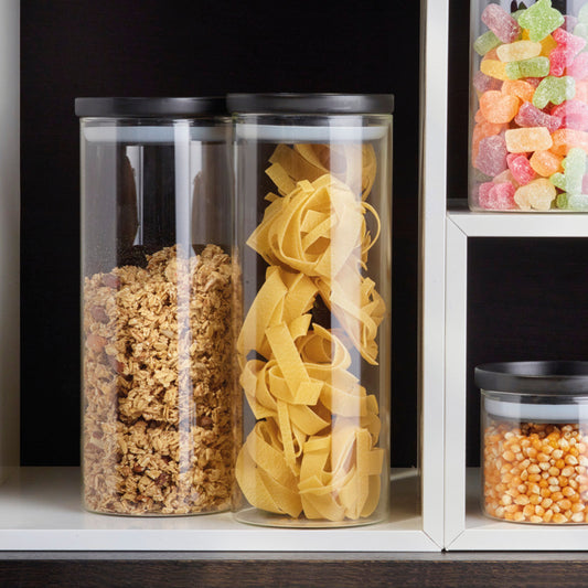 Set de 6 boîtes en verre avec couvercle en plastique – transparent et noir – 0.5l + 1L + 1.5L