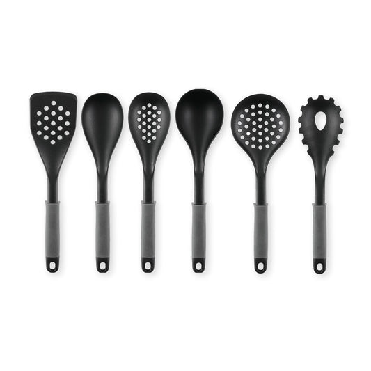 Support de rangement rotatif gris foncé avec 6 ustensiles de cuisine