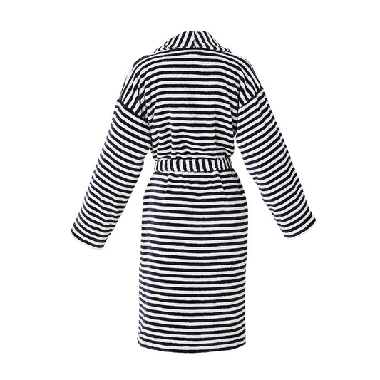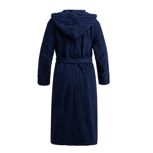 Peignoir avec capuche Rayures tissées Jacquard - Bleu foncé