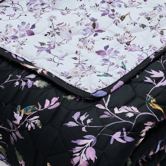 Couvre-lit matelassé en 100% satin de coton - dessin Birds bleu