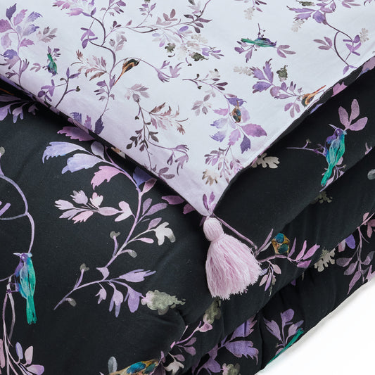 Édredon avec glands - Jardin du colibri Noir gris - 140 x 200 cm