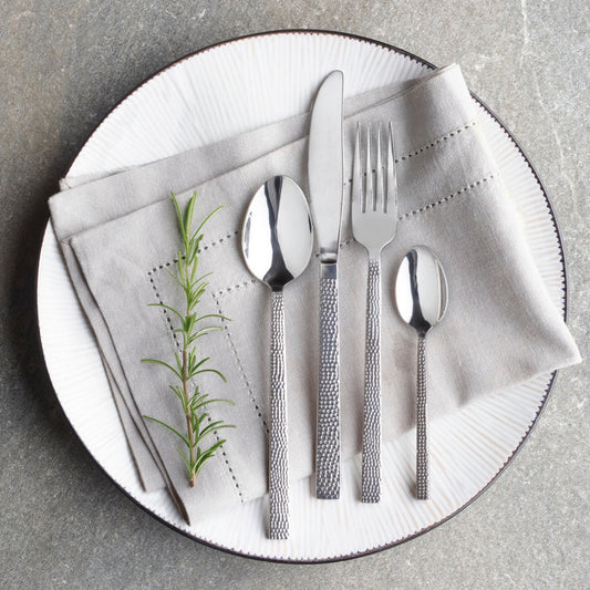 Ménagère 48 pièces manche look martelé - acier inoxayble finition brillante