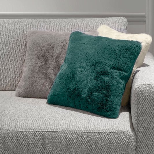 Housse de coussin ultra douce en imitation fourrure de lapin – 40 x 40 cm : vert
