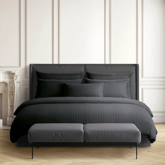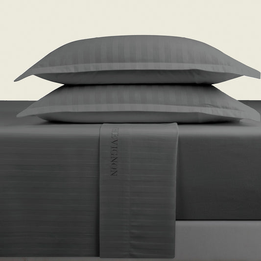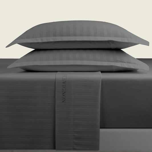 Ensemble de draps satin de coton rayure tissé dobby - Gris foncé