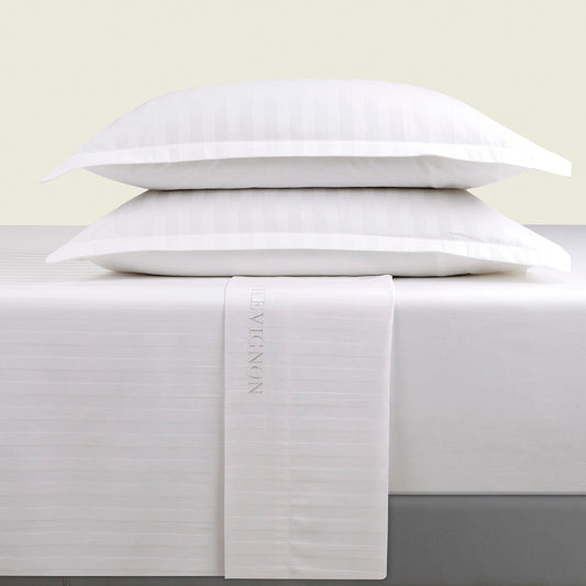 Ensemble de draps satin de coton rayure tissé dobby - Blanc