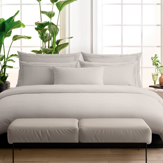 Drap plat satin de coton - Jacquard stripe Gris foncé
