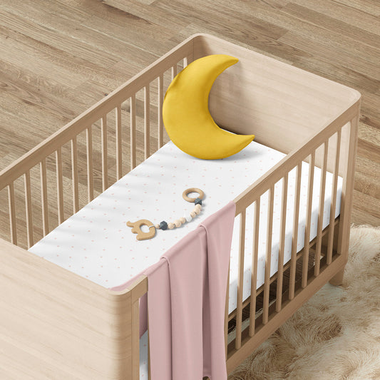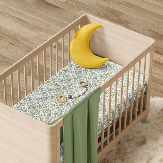 Drap plat bébé satin de coton - Floraison de Roses Blanc / Vert