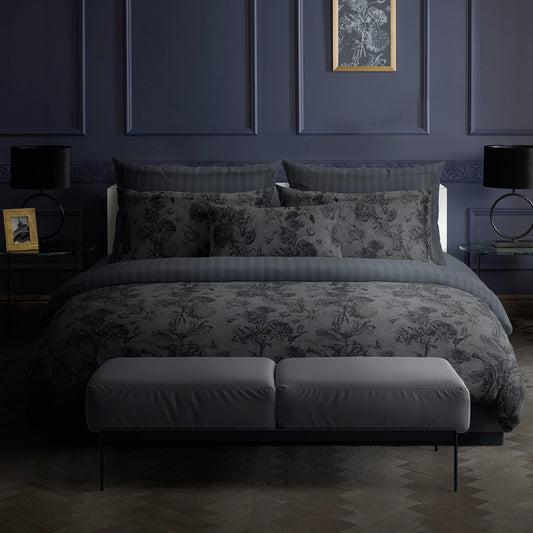 Drap plat satin de coton - Jardin Botanique Gris foncé