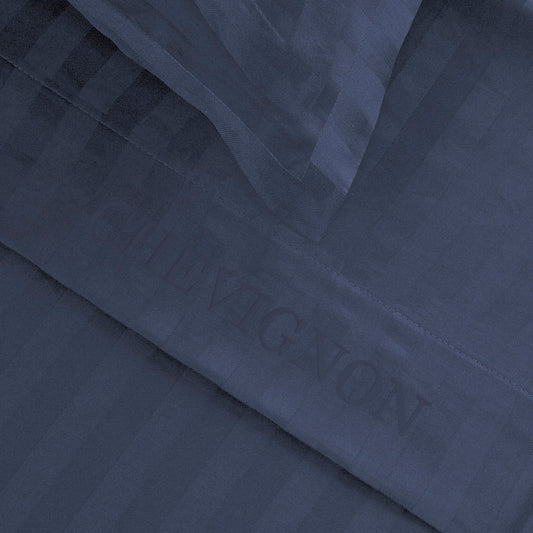 Drap plat satin de coton dobby stripe - Bleu foncé