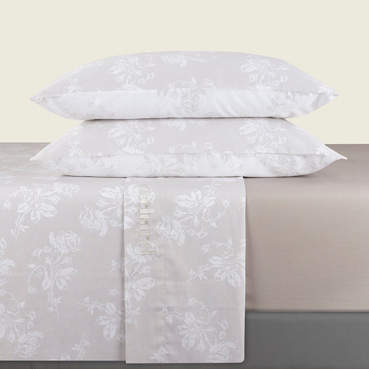Ensemble de draps : drap-housse, drap plat, taie(s) d'oreiller en satin de coton - dessin Garden Taupe