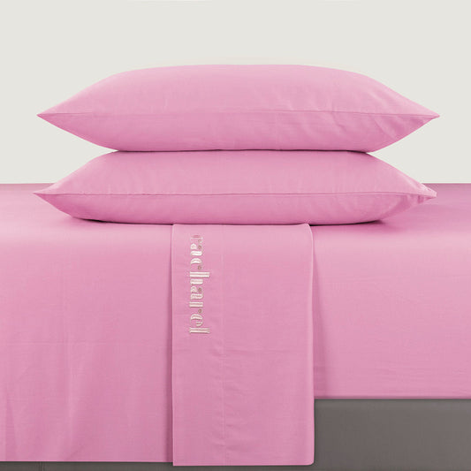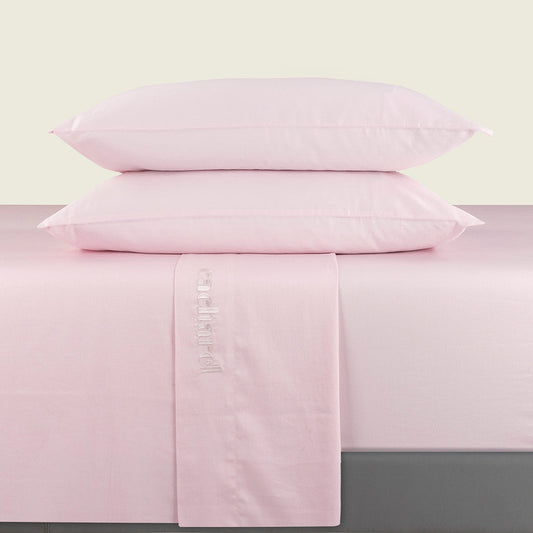 Ensemble de draps : drap-housse, drap plat, taie(s) d'oreiller en satin de coton - Uni Rose