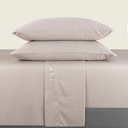 Ensemble de draps : drap-housse, drap plat, taie(s) d'oreiller en satin de coton - Roses Taupe