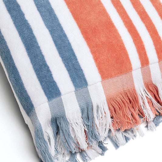 Serviette de plage à rayures ultra douce et grande - en coton velours : Riviera