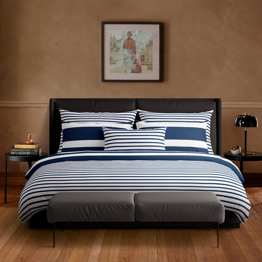 Housse de couette + taie(s) satin de coton - Horizon Bleu