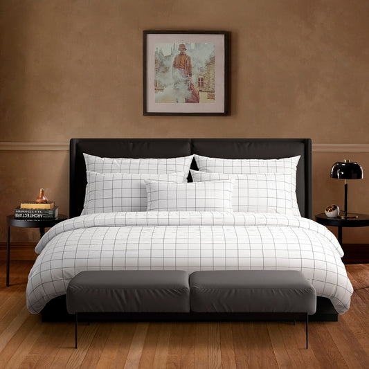 Housse de couette + taie(s) satin de coton - Motif à carreaux Blanc