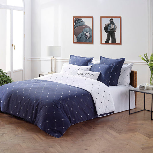 Housse de couette + taie(s) satin de coton - Canards Evy Bleu
