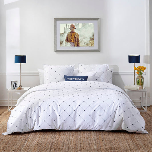 Housse de couette + taie(s) satin de coton - Canards Evy Blanc