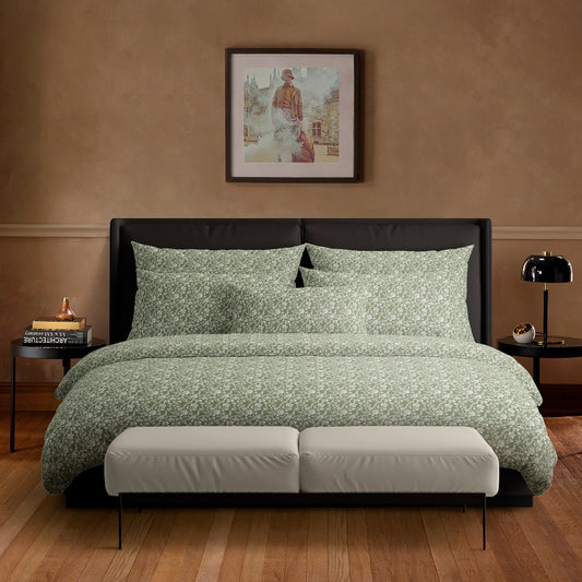 Housse de couette + taie(s) satin de coton - Fleurs Vert
