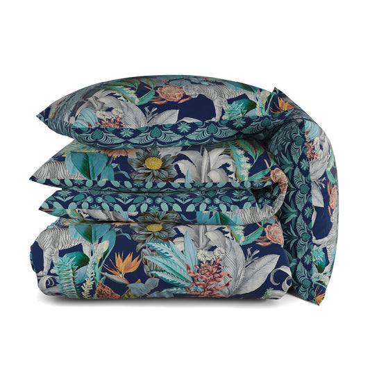 Boutis en satin de coton et velours ultra doux piqué - Jardin Tropical Bleu