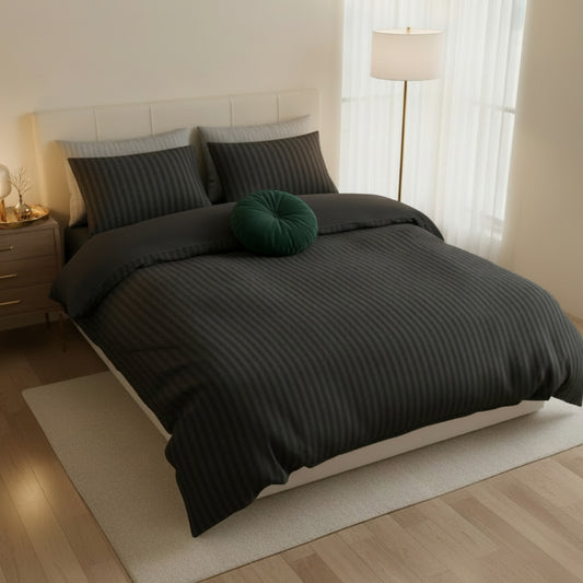 Housse de couette + taie d'oreiller satin de coton rayure tissé dobby - Gris 03
