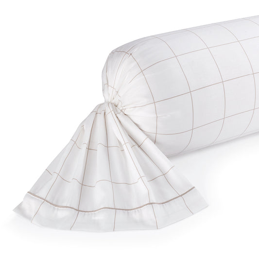 <p>Taie(s) d'oreiller satin de coton - Carreaux minimalistes Blanc / Taupe</p>