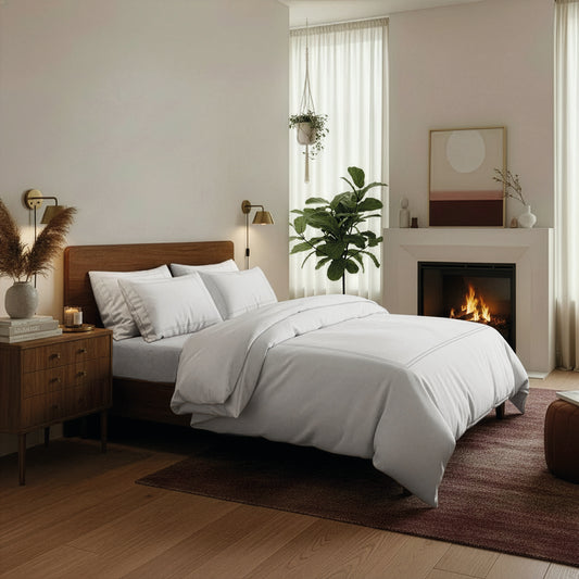 Ensemble de draps satin de coton - Annecy Blanc / Taupe