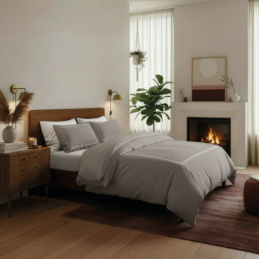 Ensemble de draps satin de coton - Annecy Grey / Blanc