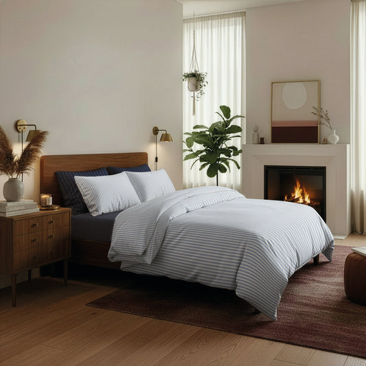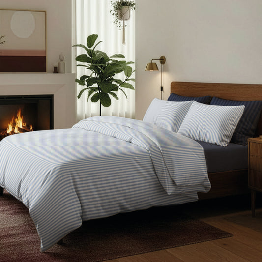 Housse de couette + taie d'oreiller coton percale - Sorbonne Bleu clair